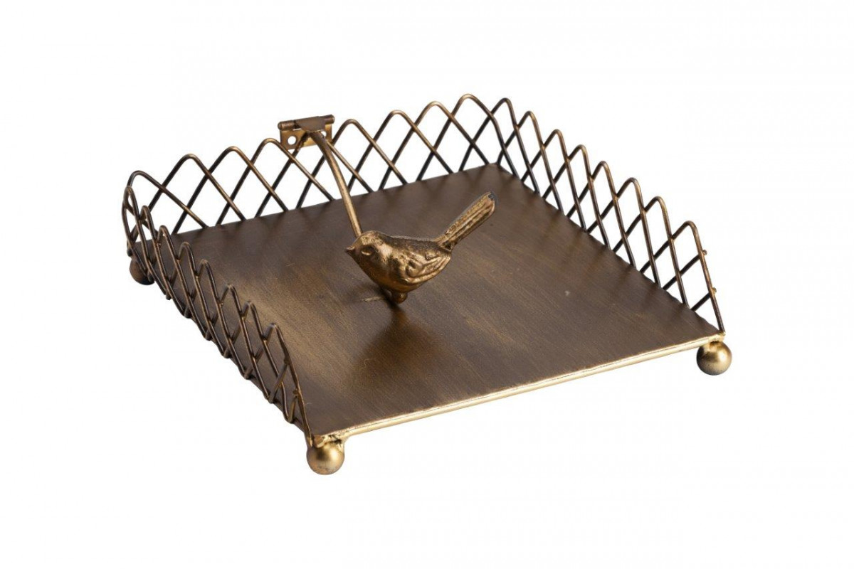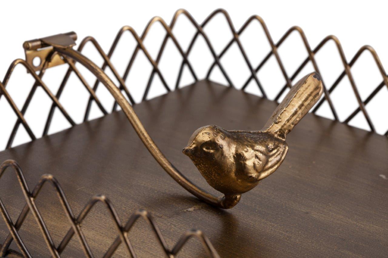 Настольный лоток для бумаг Octavio изготовлен из металла бронзового цвета, края окантованы сетчатой металлической вязью, зажим сделан в виде симпатичной металлической птички. Благодаря изящному дизайну и удобству в использовании, является стильным аксессуаром на рабочем столе.