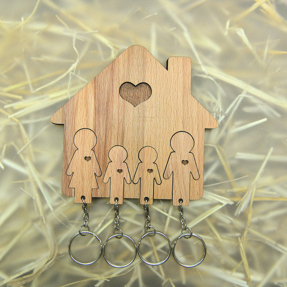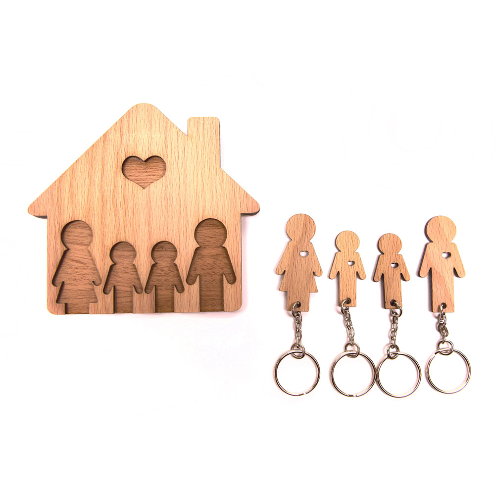 Ключи от дома часто валяются в прихожей или сумке, и многие из нас тратят ценные минуты на их поиски. Ключницы Mimi - это не только практичный, но и очень уютный аксессуар, который украсит интерьер и станет надежным «хранителем» ваших ключей. Набор «Семья с двумя сыновьями» станет замечательным подарком на новоселье - помимо самой ключницы из качественной древесины, в него входят четыре фигурных брелка, которые вставляются в прорези на корпусе. Теперь ключи всегда будут под рукой, и вы не перепутаете комплекты.