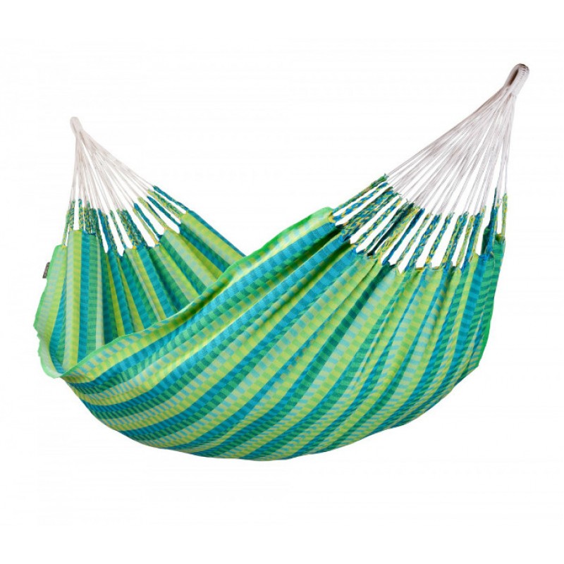 Двухместный гамак ручной работы изготовлен из высококачественного чистого хлопка в Колумбии, где гамак является неотъемлемой частью ежедневной жизни. Характерной особенностью гамаков, произведенных в Колумбии, является конструкция подвеса в виде разомкнутой петли, что позволяет крепить гамак как традиционным способом – к деревьям или опорам, так и к специальному деревянному каркасу. Надежные подвесные канаты обеспечат равномерное распределение веса, а благодаря удвоенным нитям по основе ткани, этот гамак особо прочен и позволит вам наслаждаться безмятежным отдыхом в нем долгие годы. Гамаки серии Currambera отличаются яркими, износостойкими тканями и разнообразием конструкций: предлагаются одноместный гамак, гамак на двоих, гамак с траверсами перекладинами, кресло-гамак, гамак-шезлонг. Отдых в гамаке подарит вам особенное ощущение свободы и невесомости, позволит расслабиться мышцам спины и шеи, ощутить душевный комфорт и уют от ощущения кокона, которое дарит любой гамак, вне зависимости от конструкции.