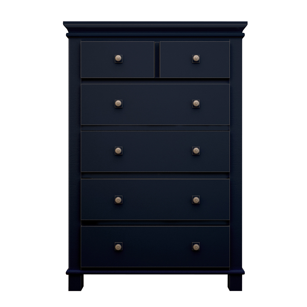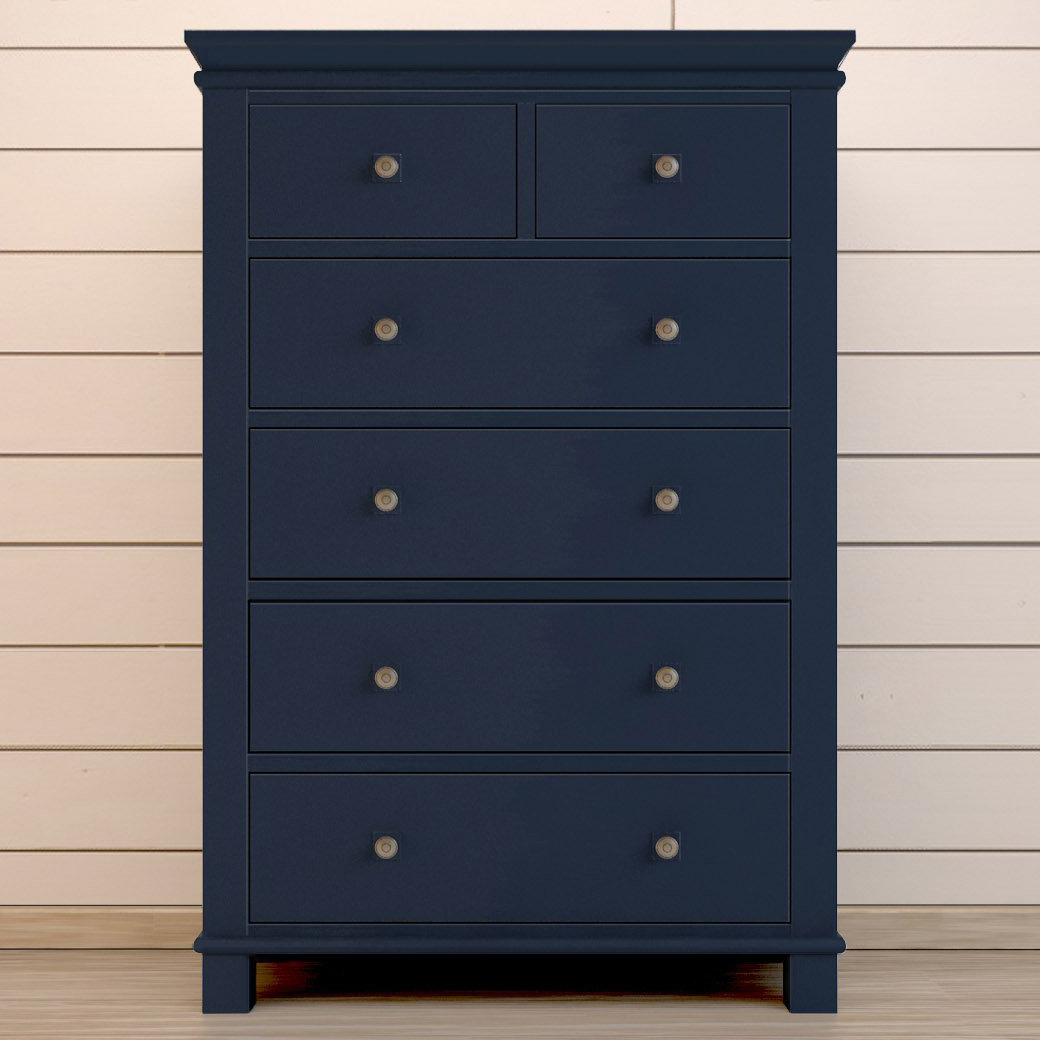 Цвет: Синий,Глубина, см: 40,Высота, см: 126,Ширина, см: 85,Материал: Массив березы,Размер: Большие,Стиль: Кантри,Форма: Прямоугольные,Дизайн: Англия,Вид: Высокие,Ориентация: Вертикальная,Назначение: Для белья,Количество ящиков: 6,Опора: На ножках,Коллекция: Jules-Verne, Комод Jules Verne высокий Синий