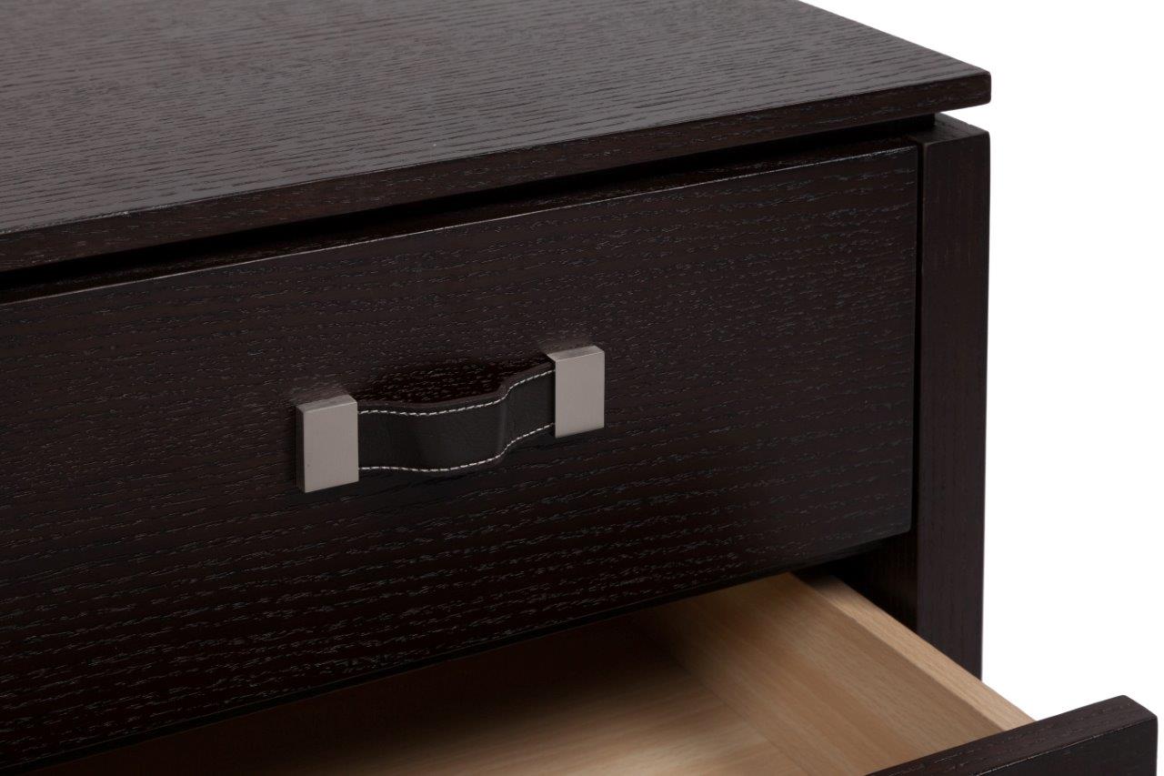 Тумба Lorimer идеально подойдет для жилища истинного джентльмена. Она выполнена в красивом шоколадном цвете, имеет необычные сплошные ножки, квадратную столешницу, а также два ящика для хранения, на которых расположены стильные ручки из кожи и хромированной стали. Тумба будет наиболее уместна в холле или прихожей.