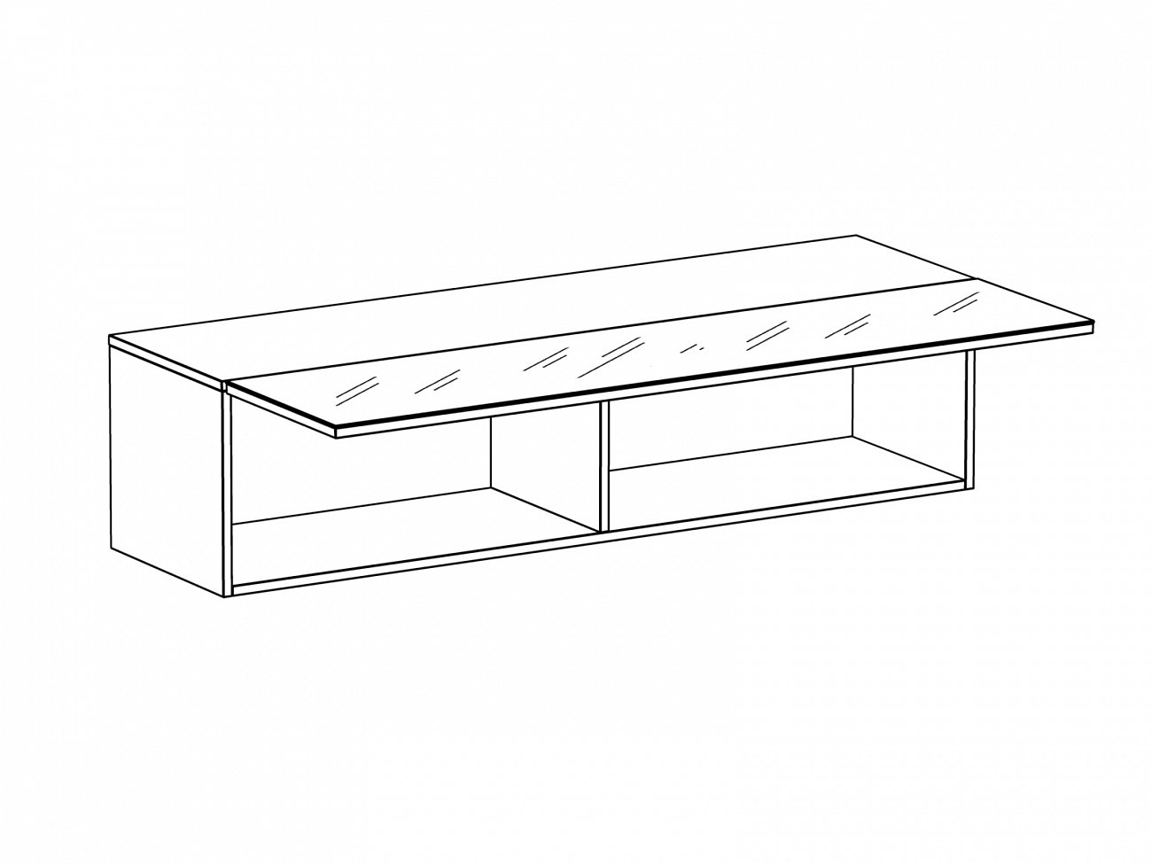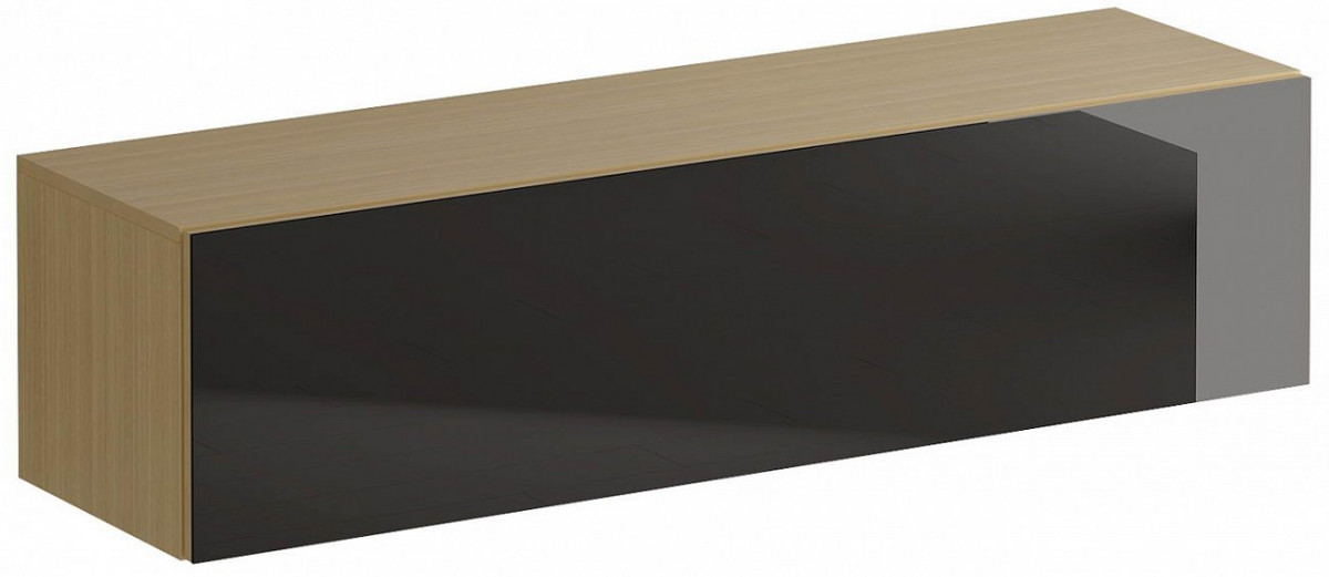 Шкаф имеет два отделения, образованные вертикальной перегородкой. Подъемная дверь открывается по принципу «нажал-открыл». Задняя стенка белого цвета.