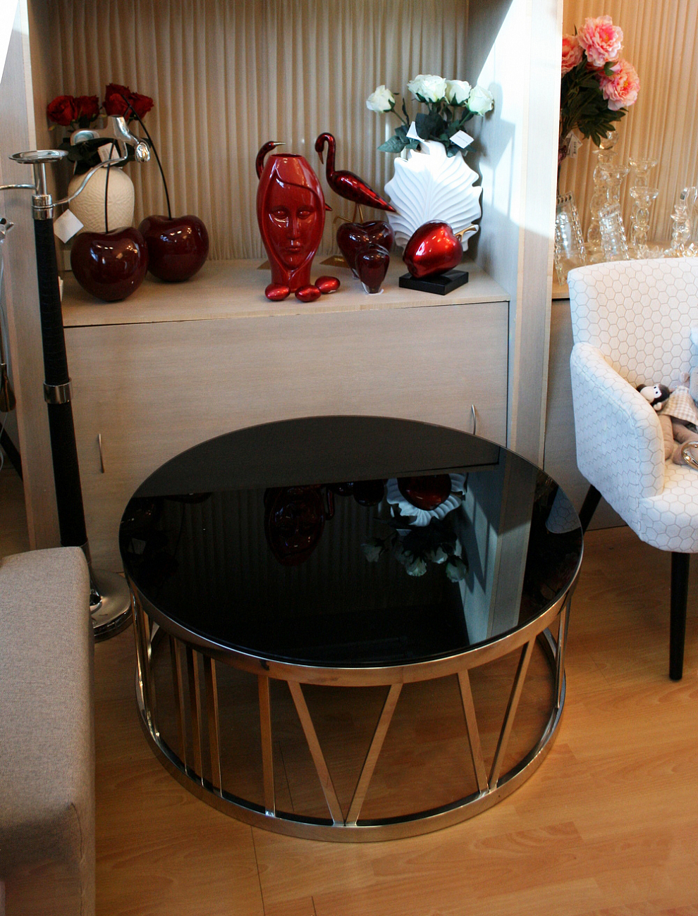 | Материал | каркас - хромированная нержавеющая сталь / столешница - черное стекло | |