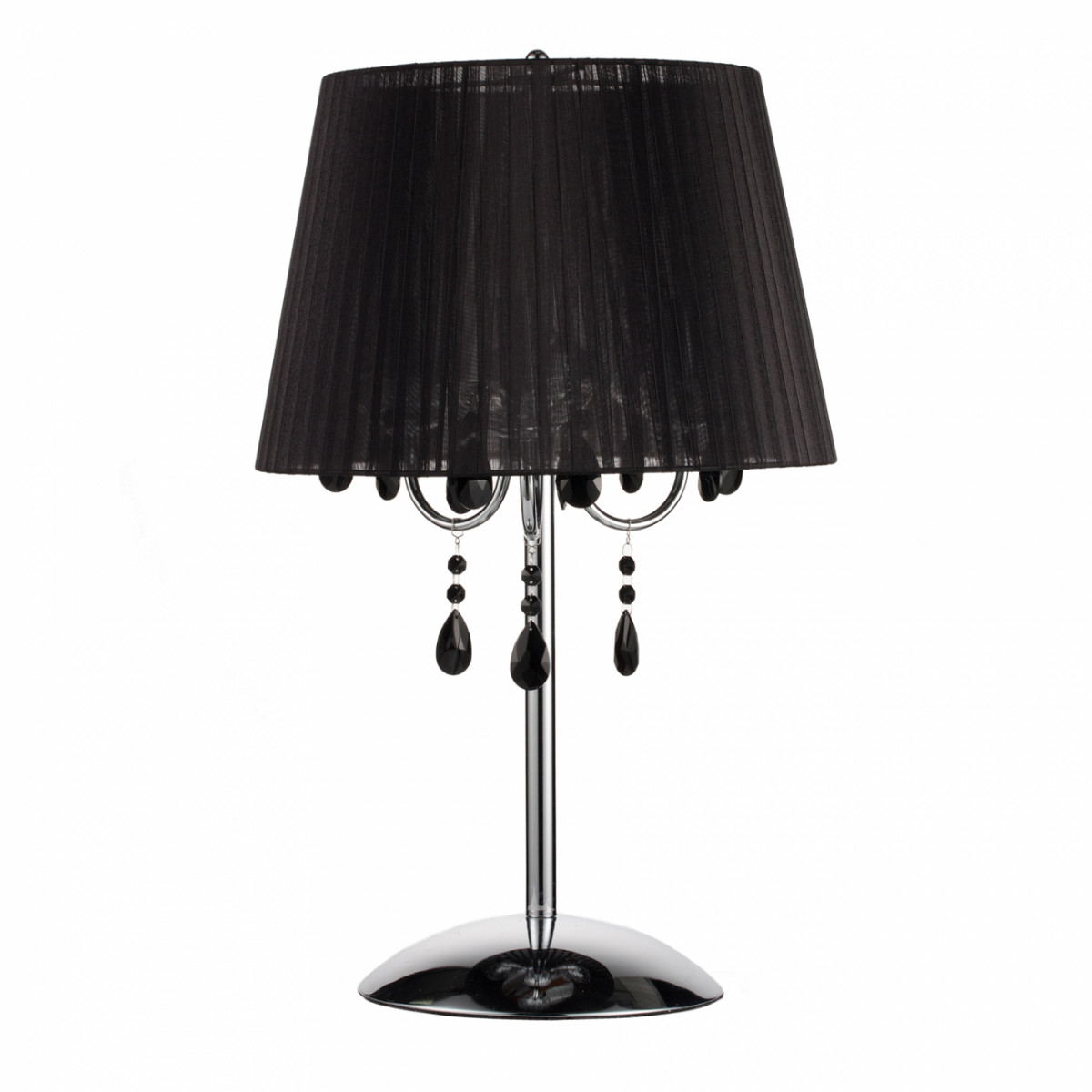 Настольная лампа: черный тканевый абажур размер диаметр 33 см, высота 22 см, основание хромированное железо, хрусталь, предназначена для использования со светодиодными лампами Е14-3 лампы лампы не включены в комплект