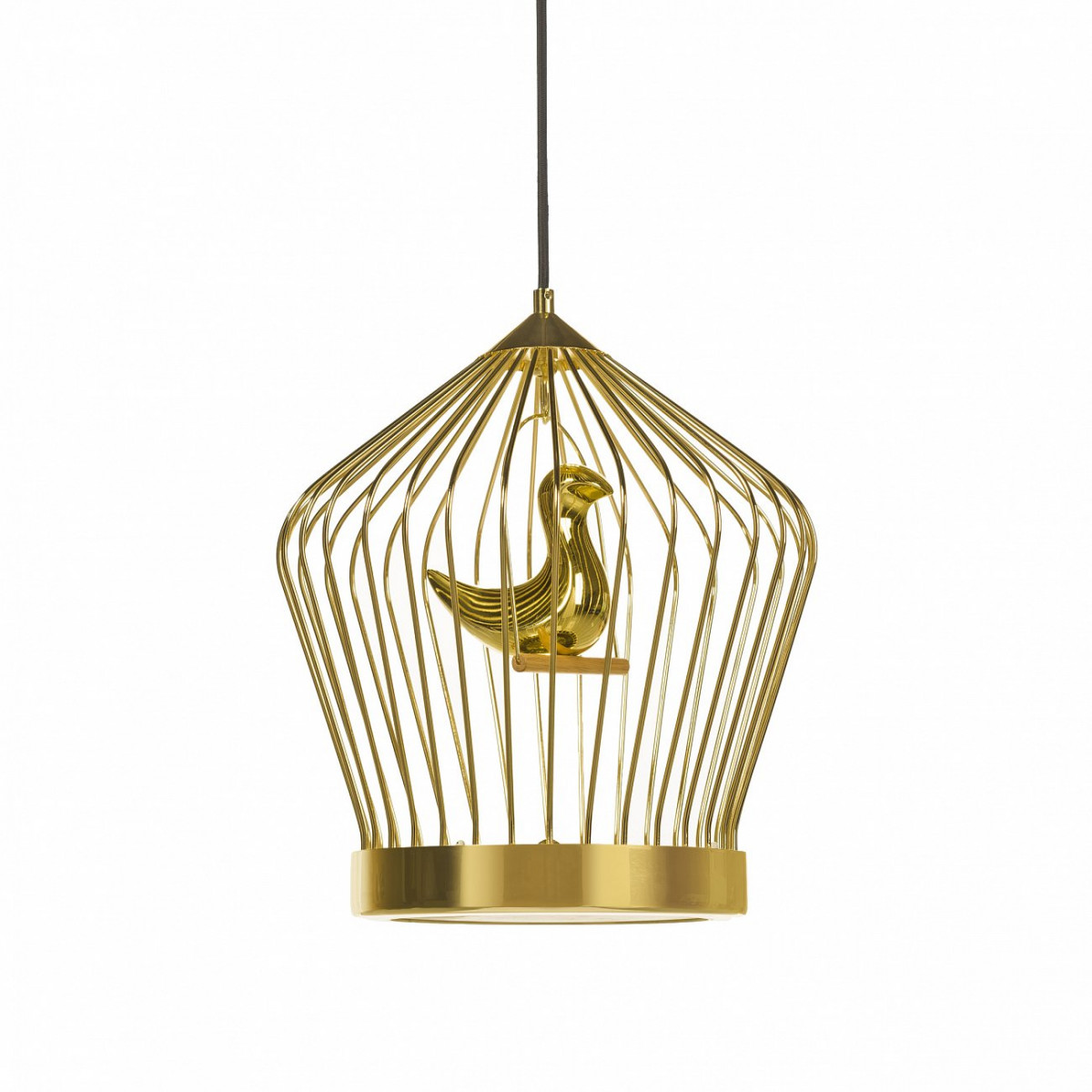 Томиться, как птичка в клетке, никому не придется. Защитники живой природы и братьев наших меньших могут спать спокойно — все права соблюдены, ни одной птички не пострадало. Маленькая пташка в золотой клетке — лишь новая придумка дизайнеров, которые не устают обыгрывать привычные объекты для создания эффектных и забавных светильников.