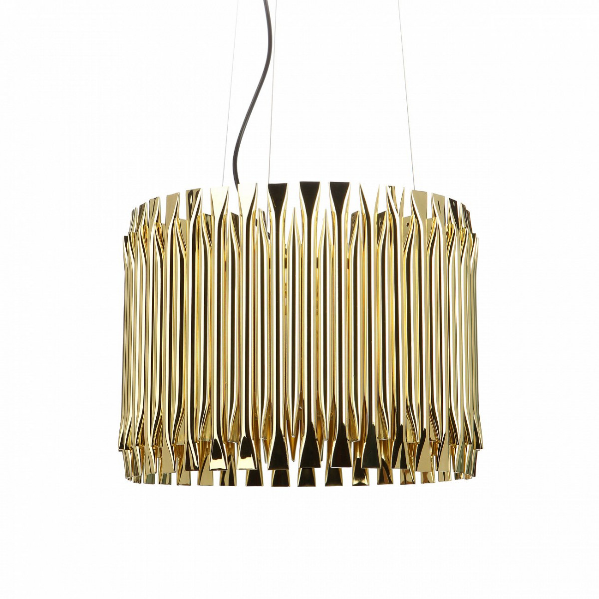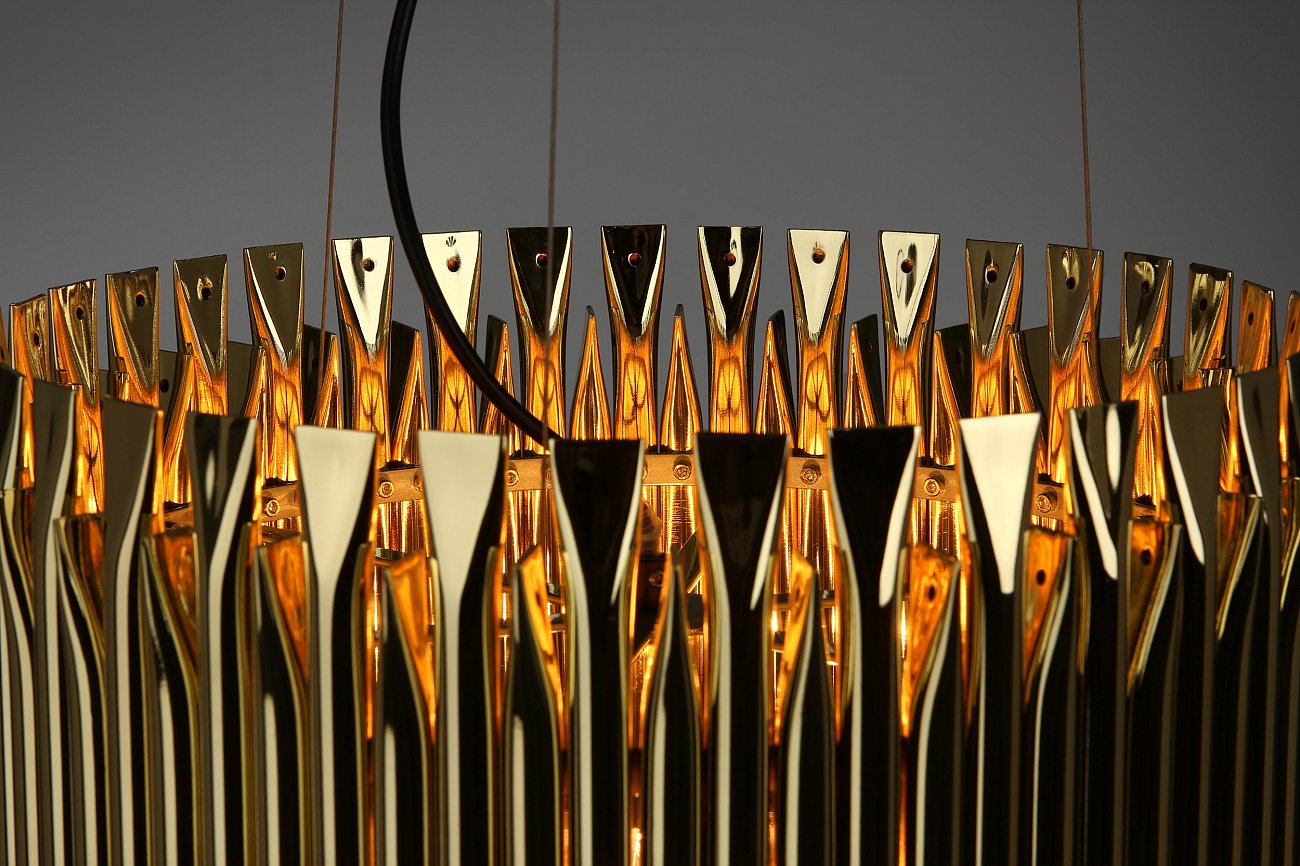 Идеальный для классических гостиных с небольшим современным акцентом подвесной светильник Matheny диаметр 41 — это стильное и модное изделие, которое не может не приглянуться своим ярким дизайном. Светильник состоит из полых золотых трубок, надежно соединенных между собой в конструкцию правильной геометрической формы.В