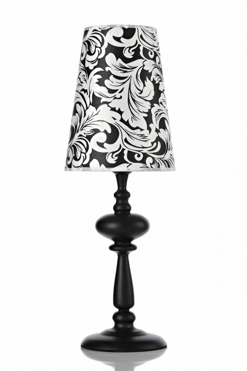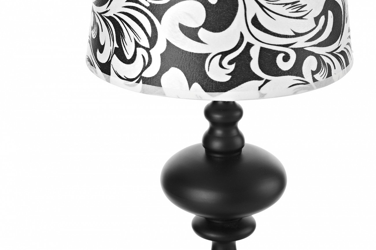 Изысканная настольная лампа Francesca для любителей вещей в чёрно-белой гамме! Действительно, вещи в этой гамме смотрятся часто оригинально, ведь с этими цветами можно экспериментировать бесконечно. Лампа ставится на круглое основание, на котором установлена фигурная ножка с округлыми элементами. Ножка выполнена из металла в чёрном цвете. На ножке располагается абажур лаконичной формы, немного сужающийся кверху. Абажур выполнен из чёрной ткани, на которой нанесен белый узор, его диаметр 20 см, высота 26 см.